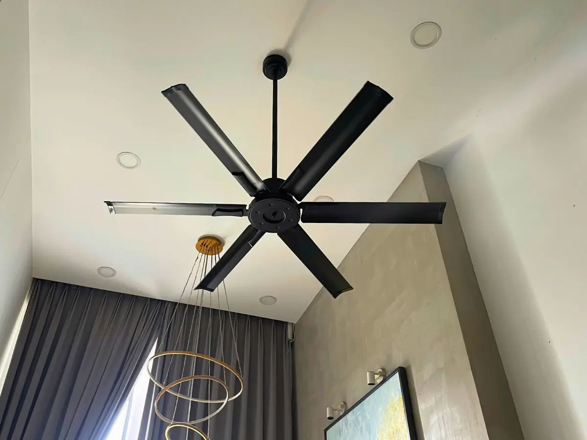 Ứng dụng: Quạt trần ngoài trời cực kỳ hiệu quả ở pool bar, sảnh thương mại, ban công – những nơi khách hàng muốn cảm nhận không khí ngoài trời nhưng vẫn cần sự dễ chịu.